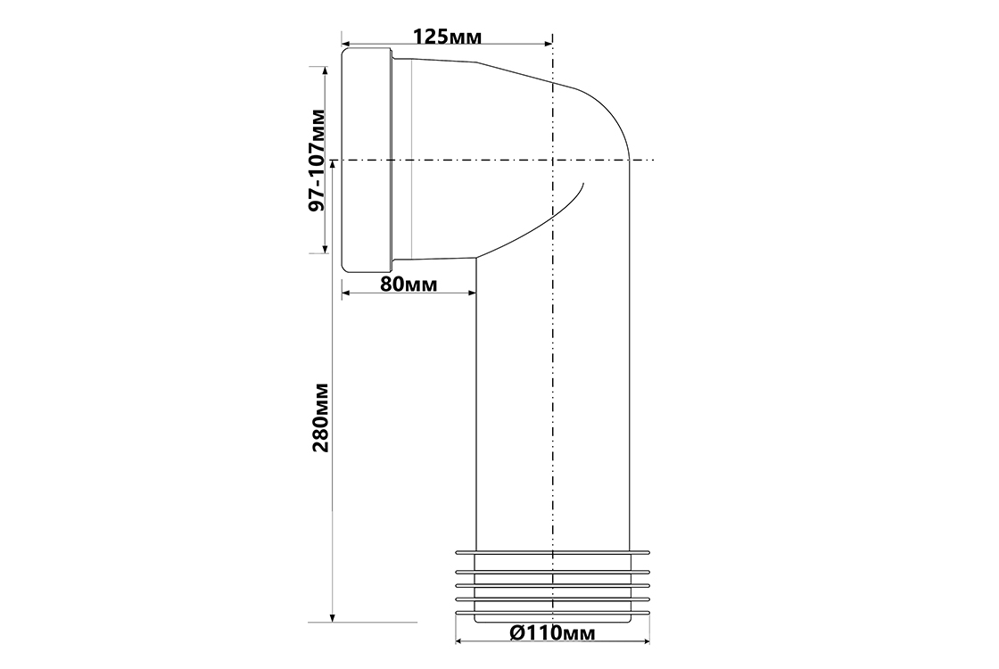 Коліно для унітазу під кутом 90 з ущільненням L-236mm WC-CON8E