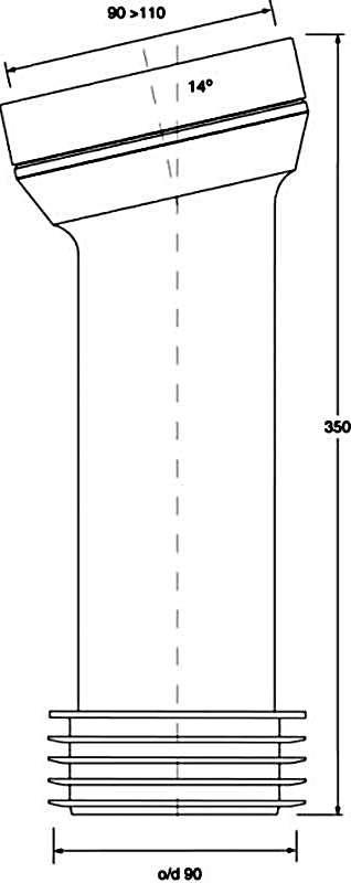 Коліно-підключення до WC під кутом 14 з ущільнювачем (довге) WC-CON7