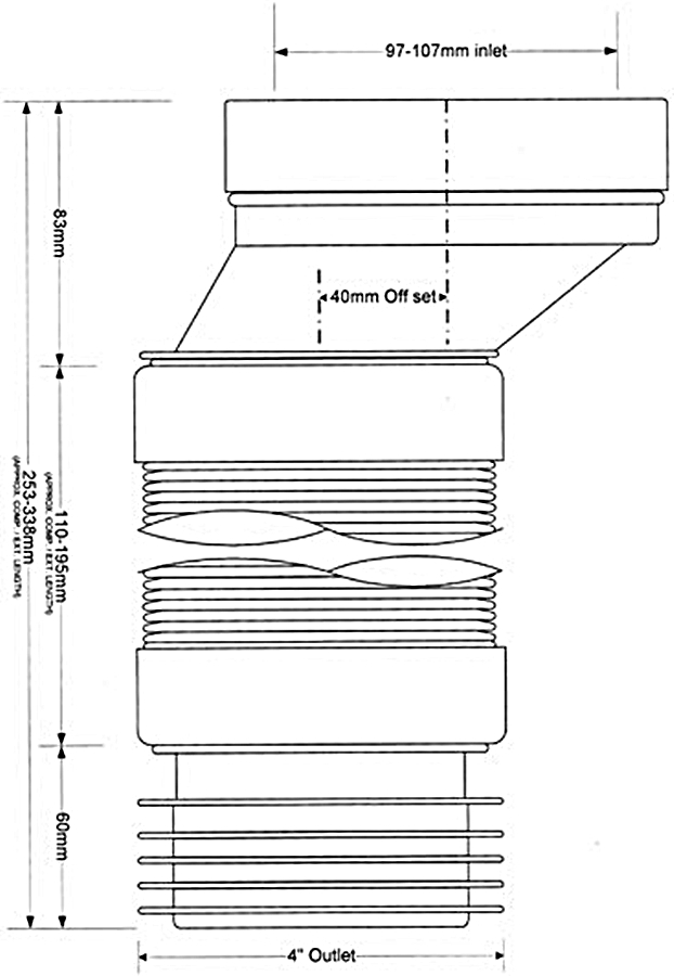 Відгуки про "Коліно-підключення еластичне до WC зміщене на 40 мм з ущільненням L-110 мм WC-CON4AF"