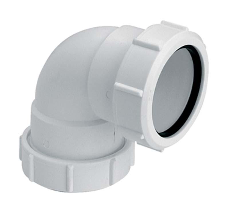 Коліно пластикове 90° ∅50 з гайками, 50A-WH