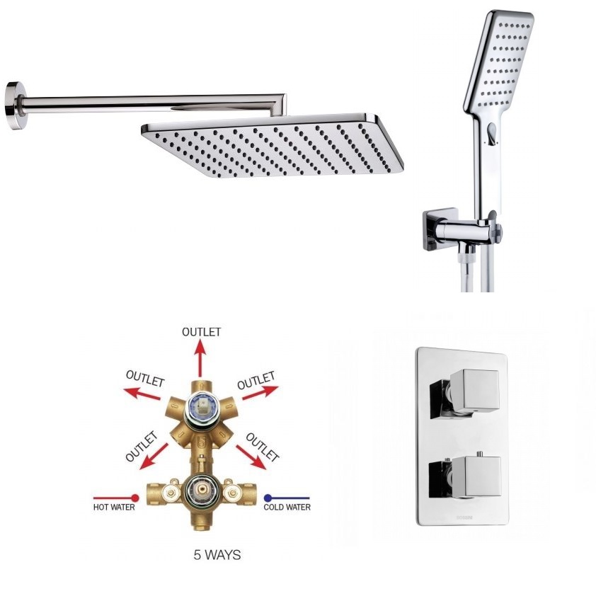Комплект для душа Bossini Cosmo з верхнім душем 28x28см, душовим комплектом та комплектом термостатичного змішувача, chrome (H70598I00030 PLUS)