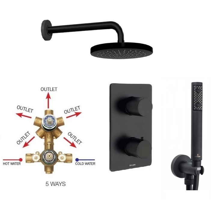 Особливості комплекту для душа Bossini Cosmo з верхнім душем D250 мм, душових набором і комплектом термостатичного змішувача, чорний матовий (KIT H19412G00073 PLUS):