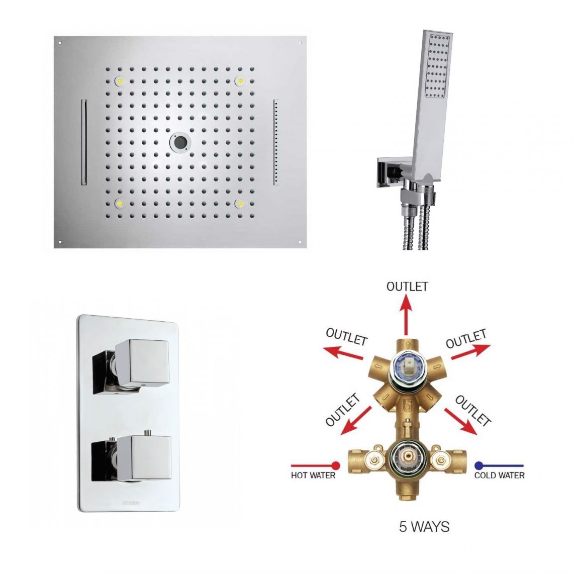Верхній душ BOSSINI Dream / 4 дощ, водоспад, каскад, Kneipp, 4RGB LED, 57x 47сm, хром (H38909000030016)