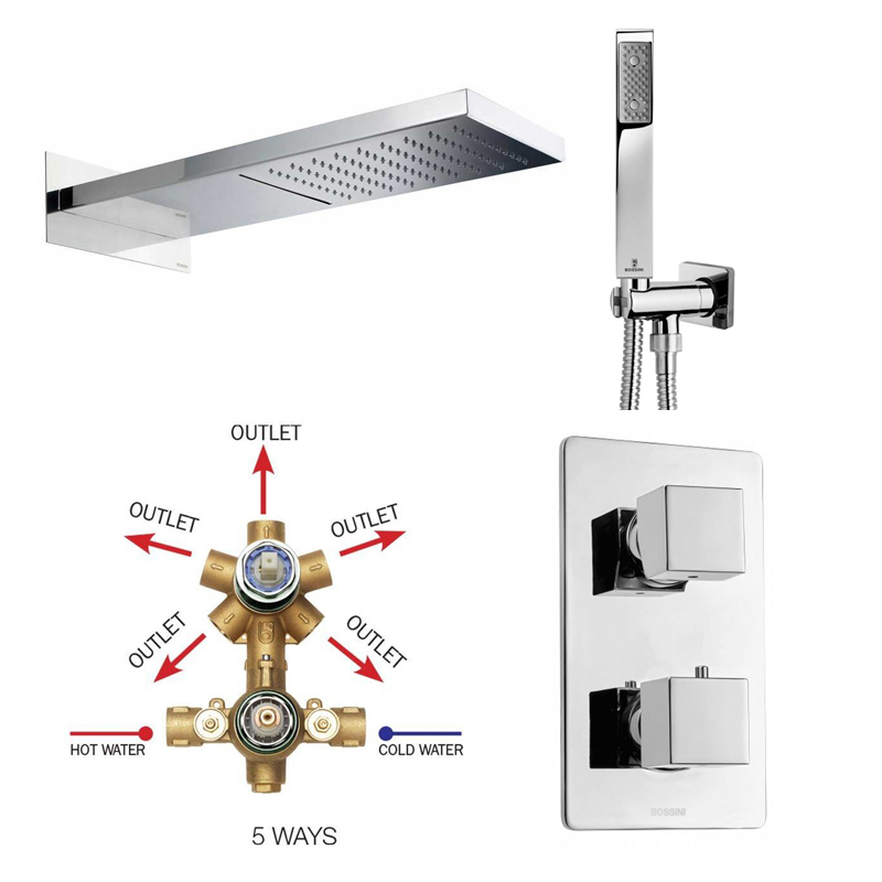 Комплект для душу Bossini з верхнім душем, ручним душем та комплектом термостатичного змішувача, хром (M00803000030008)