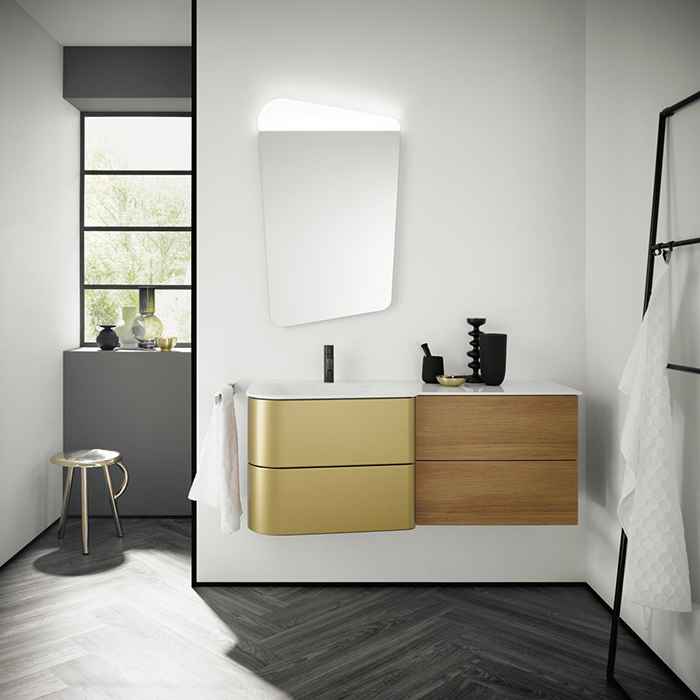 Комплект меблів BurgBad Badu 1220х510х492 мм, корпус K0545 кориця, фасад T0015 золото (SFUG122LK0545F3698T0015C001_1) - тонка гра форми і кольору.