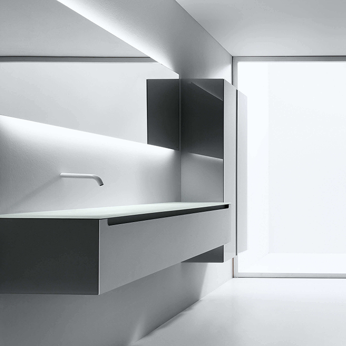 Комплект меблів Falper Edge 160х45х30 см з дзеркалом LED 2x35W 160х60х4 см, білий (EA5160SXH1 / 69C160) - енергія, втілена в формах і пропорціях.