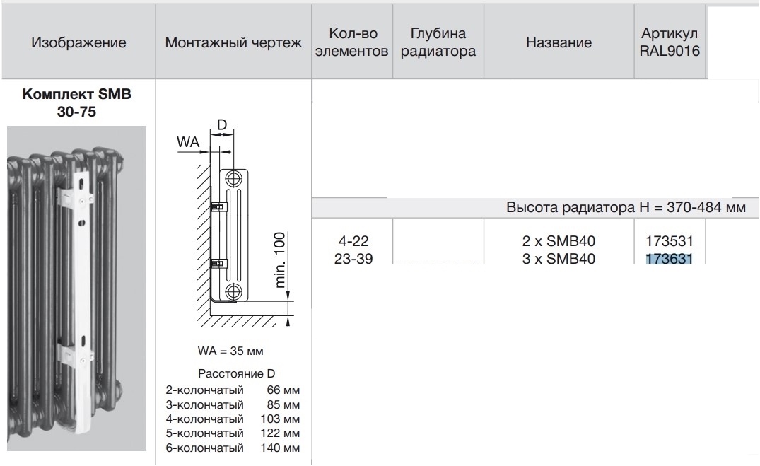 Відгуки про "Комплект настінного кріплення 2 x SMB40 для Charleston H 370-484 мм (173531) RAL9016"