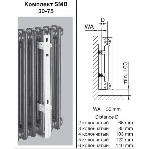 Відгуки про "Комплект настінного кріплення 2 x SMB50 для Charleston H 485-679 мм (173541) RAL9016"