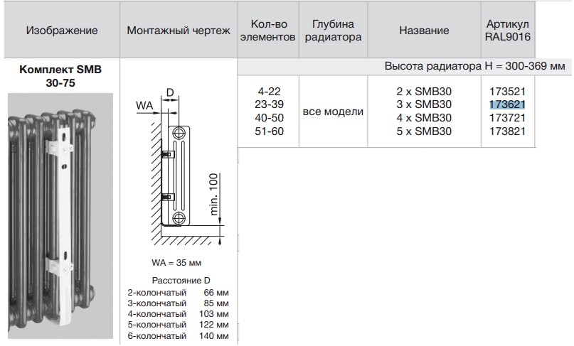 Відгуки про "Комплект настінного кріплення 3 x SMB30 для Charleston H 300-369 мм (173621) RAL9016"