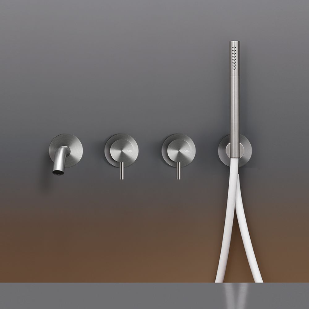 Комплект настінний з 2 змішувачів для ванни CeaDesign Milo360 з виливом і циліндричним ручним душем D18 мм, сатин (MIL44S) - продукт з чистими формами, позачасовим дизайном і високою технологічною цінністю.