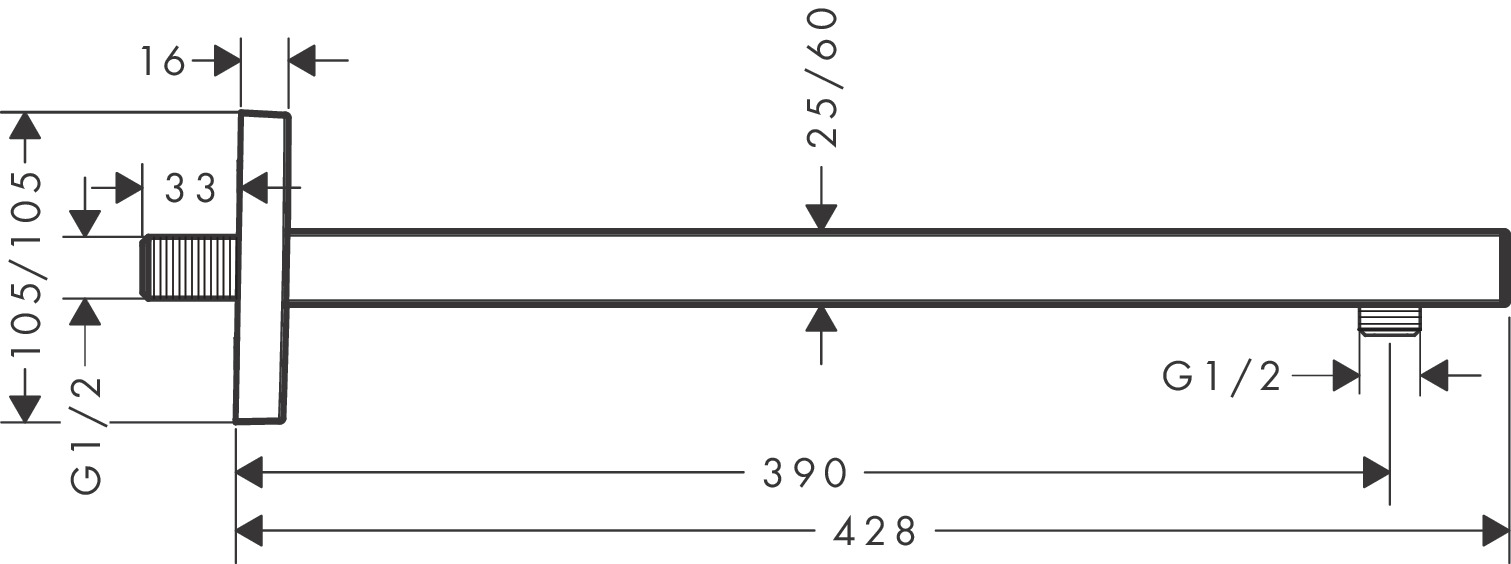 Кронштейн для верхнього душу E 389 мм Matt Black (27694670)