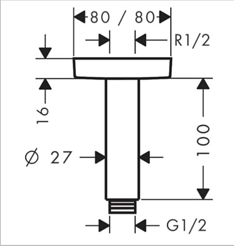 HANSGROHE Кронштейн також можна використовувати в якості подовжувача. Діаметр стержня - 27мм. З'єднувальна різьба - G ½.
