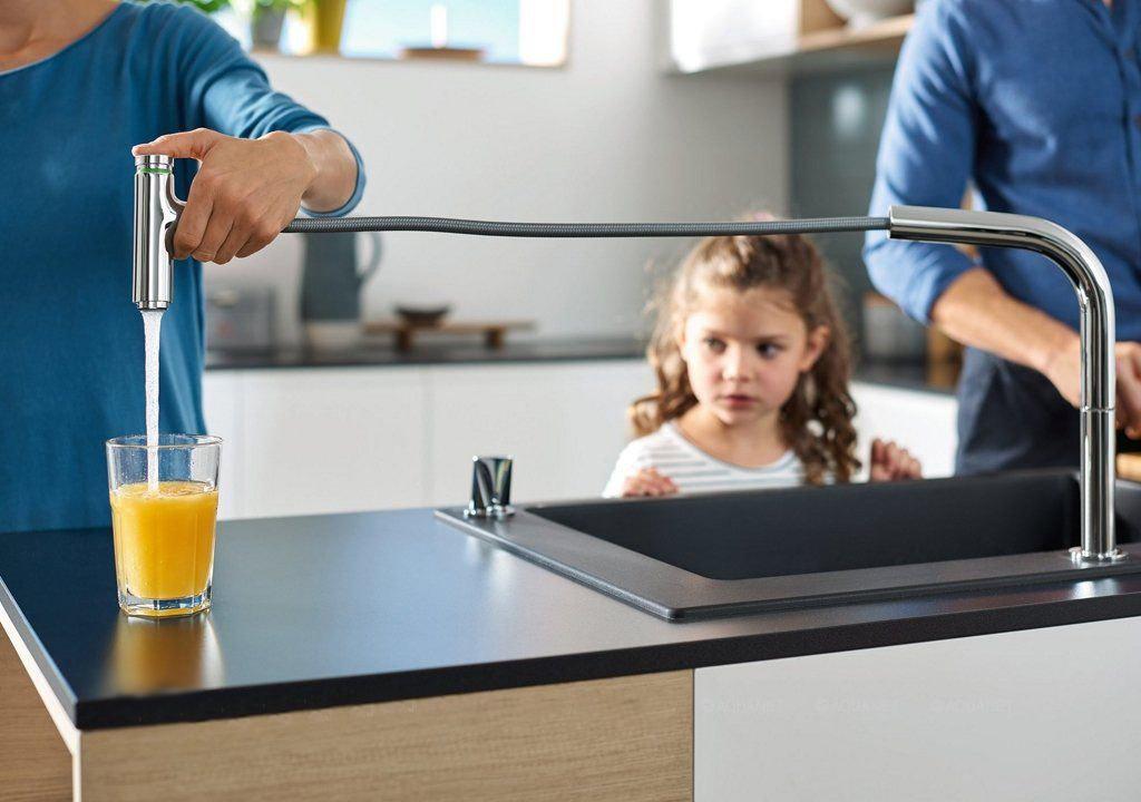 Матеріал мийки: SilicaTec. Функція MagFit - магнітного кріплення висувної лійки змішувача у виливі після користування. Діапазон повороту змішувача 150°. 2 типи струменів змішувача: ламінарний та душовий. Завдяки sBox, шланг легко і зручно висувається на 75 см. Максимальна швидкість потоку при 3 барах: 8 л/хв.