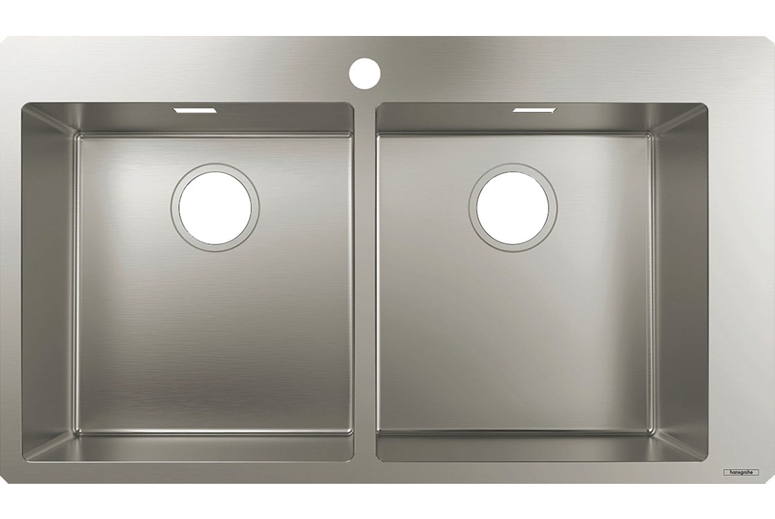 розмір: 865x500 мм,2 основні чаші,тип монтажу: плаский на стільницю (самообрамлення) або врізний монтаж,глибина раковини: 190 мм,радіус кута: 10 мм,необхідне додаткове обладнання: сифон D15-10 з переливом для мийки зі сталі на дві чаші (арт.43922800) Stainless Steel (не входять в комплект).