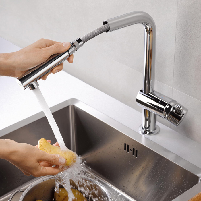 - професійна двухрежимная висувна лійка з можливістю перемикання з аератора на душову струмінь і навпаки