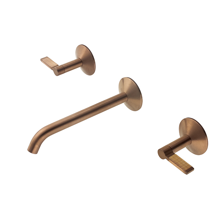 LIGNAGE LUXE, Змішувач прихованого монтажу для умивальника на 3 отвори, настінний, з керамічним картиджем. З'єднання 1/2'' без донного клапана з аератором "plus".Пропускна здатність при 3 барах 5 л/хв. Колір - brushed bronze (брашована мідь)/Також доступний в кольорі золото, матове золото та хром