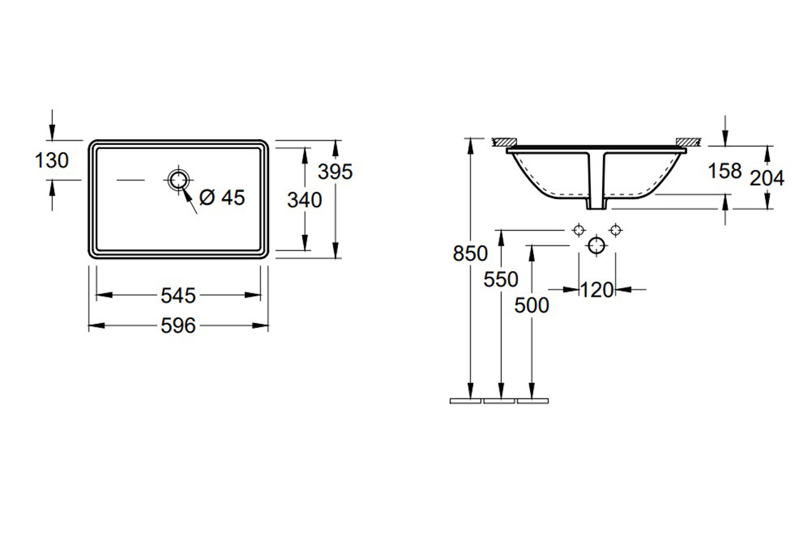 LUNEA Умивальник для установки під стільницю прямокутний 545x340 мм (51225301)