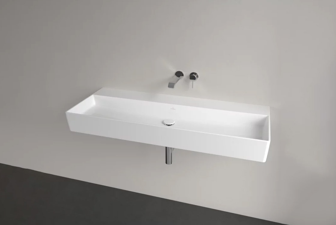 Підвісний прямокутний умивальнийк з колекційї MEMENTO 2.0 виготовлено з матеріалу TitanCeram, що гарантує високу міцність матеріалу та дозволяє створювати унікальні філігранні форми в дизайні виробів для ванної кімнати.