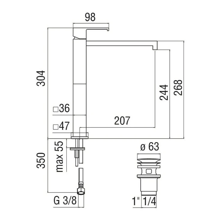 MI102128/2BM Змішувач для умивальника вис.304см, velvet black Nobili ІТАЛІЯ