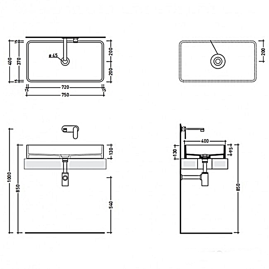 MINIWASH 75 Умивальник на стільницю 75х40 (MWL75)