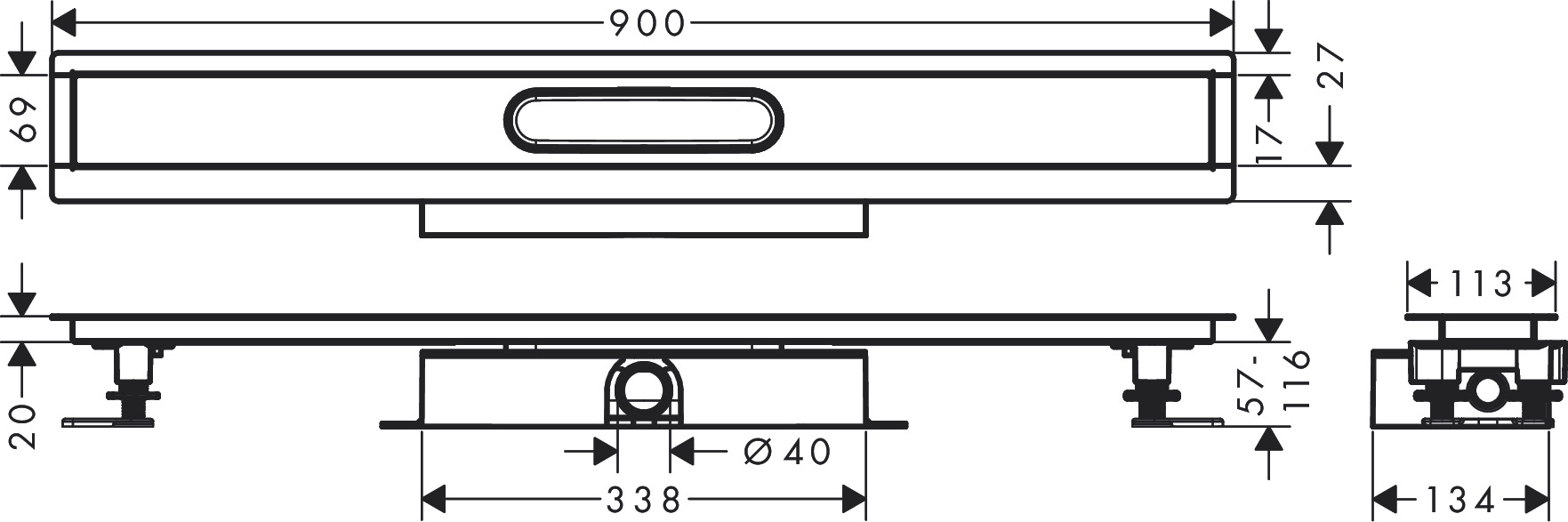 Монтажний комплект для душових трапів d40 uBox universal 900 мм (56019180)