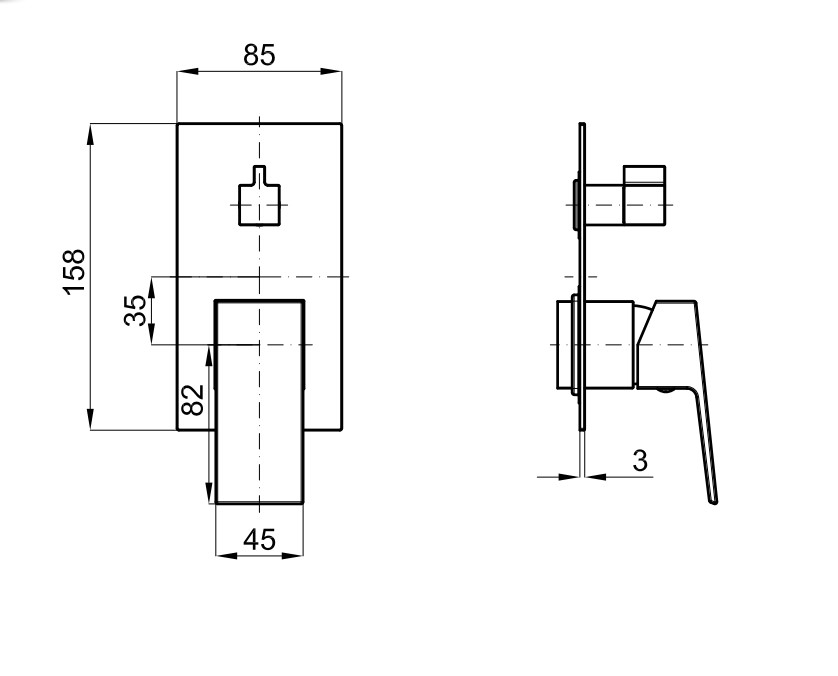 NEW SQUARE Зовнішня частина вбудованого змішувача для ванни/душу, чорний (100266788)