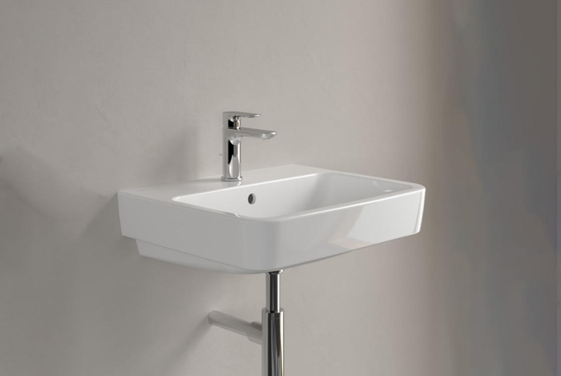 Прямокутний умивальник O.NOVO ширина 55 см, WhiteAlpin, з переливом та полірованою спинкою і нижньою частиною, призначений для настінного монтажу. Підвісний умивальник це класика, що завжди поза часом, а ще це функціонально і красиво. Колір моделі White Alpin (білий).