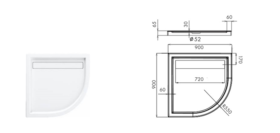 Піддон акриловий півкруглий CAMPINOS 90х90х6.5 + стелаж (3.984)