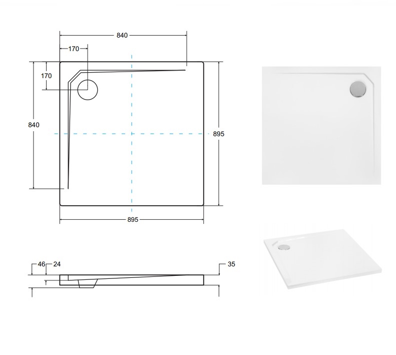 Відгуки про "Піддон квадратний ACRO 90х90x2 білий"