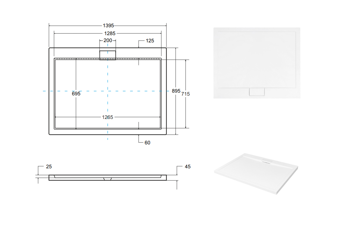 Піддон прямокутний AXIM 140x90х4.5 + сифон