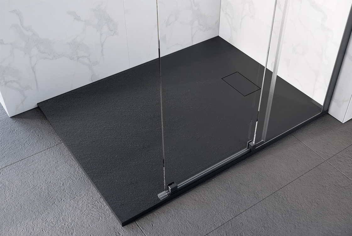 Піддон VEXO чорного кольору в комплекті з сифоном. Підходить до прямокутних душових кабін.