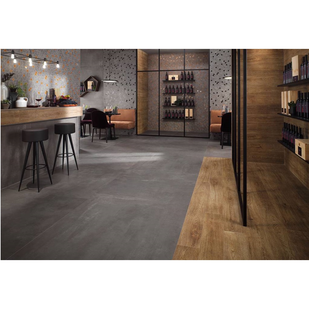 Керамограніт Atlas Concorde Boost Smoke (A0BG) - відтворює традиційну фактуру цементу в елегантній колекції керамограніта і настінної плитки насичених тонів відтінки сірого.
