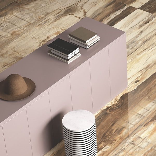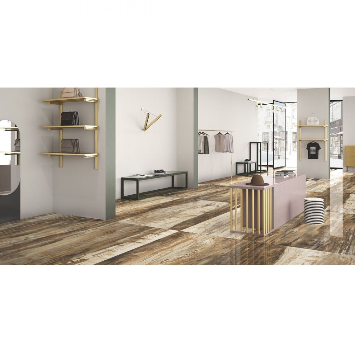 Колекція Eminent Wood Maximum викликає в уяві магічний ритуал перетворення природи. Дерева перетворюються в камінь, зберігаючи свою первісну струнку структуру і перетворюючись в скам'янілі коштовності. Керамогранітні поверхні Eminent Wood натхненні незвичайним природним явищем, яке створює тонкі дошки з неповторною естетикою, прорізані яскравими «мазками» кольору.