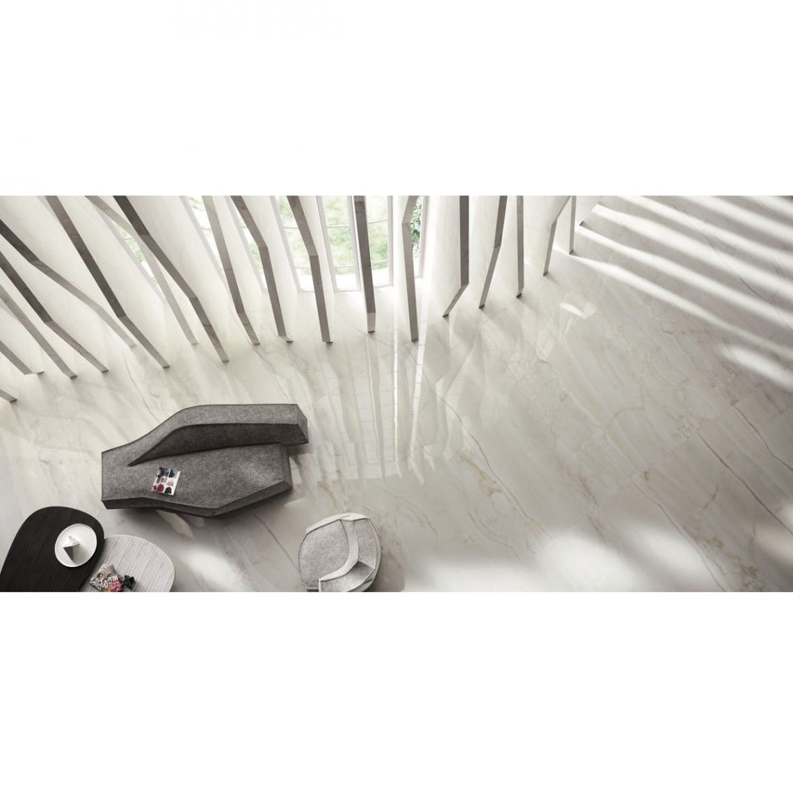 Керамограніт Fiandre Maximum Marmi Maximum Bright Onyx Max. (MMS2461530) - візуальне досконалість в двох варіантах обробки: "полірована" - для більш глибокого, більш яскравого кольору і "матова" для унікального візуального і тактильного відчуття. Матова: компроміс між полірованої і натуральної обробкою. Поверхня проявляє концентрації польового шпату та інших мінералів, які збагачують його текстуру. Полірована: обробка, отримана після обробки обробкою необробленими алмазними головками для поліпшення кінцевої твердості і блиску. Ідеальна обробка для внутрішніх підлог.
