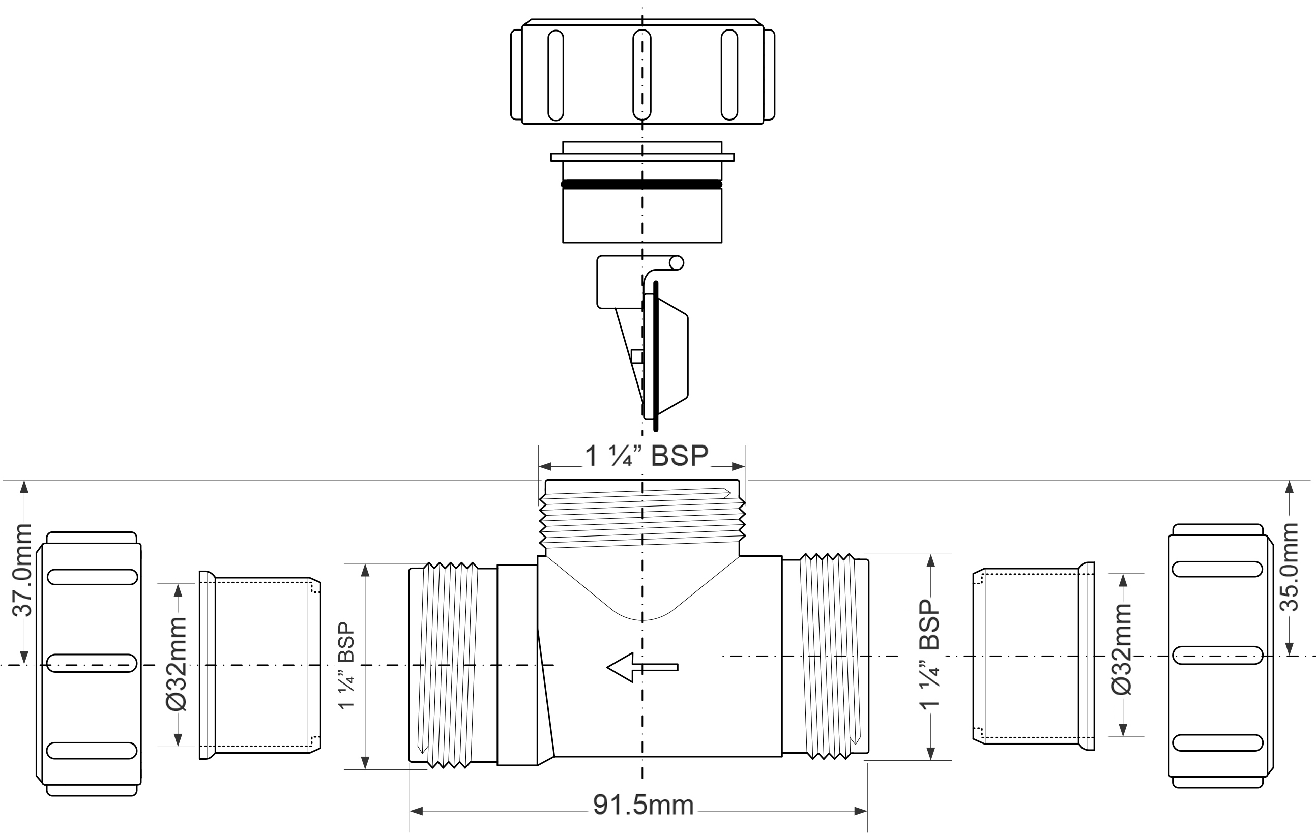 Продовжувач зі зворотним клапаном 32 мм S28-NRV-32