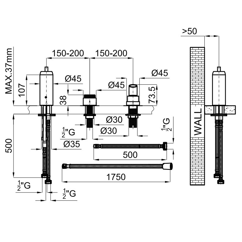 Відгуки про "PROJECT LINE Внутрішній корпус змішувача, установка на бортик ванни, чорний (100271600)"