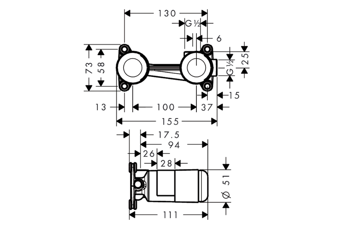 Прихована частина для змішувача зі стіни на умивальник (13622180)