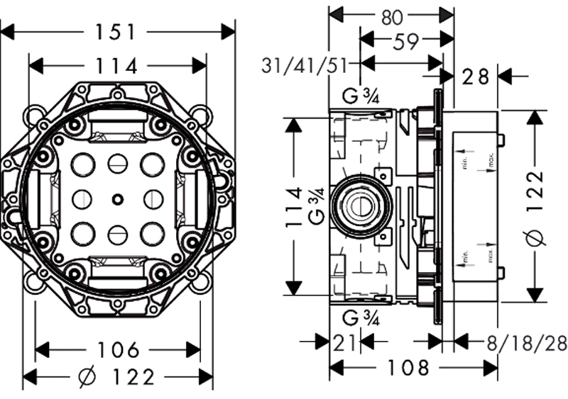 Підходить для всіх готових наборів для душу, ванни і для термостата. Опціональні приналежності: подовження прихованої частини 25 мм для ibox universal. латунь, пластик