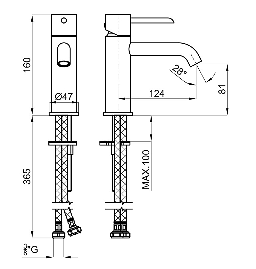 ROUND Змішувач для умивальника: керамічний картридж d35 мм + аератор"plus" / підключення 3/8", колір - хром (100208352)