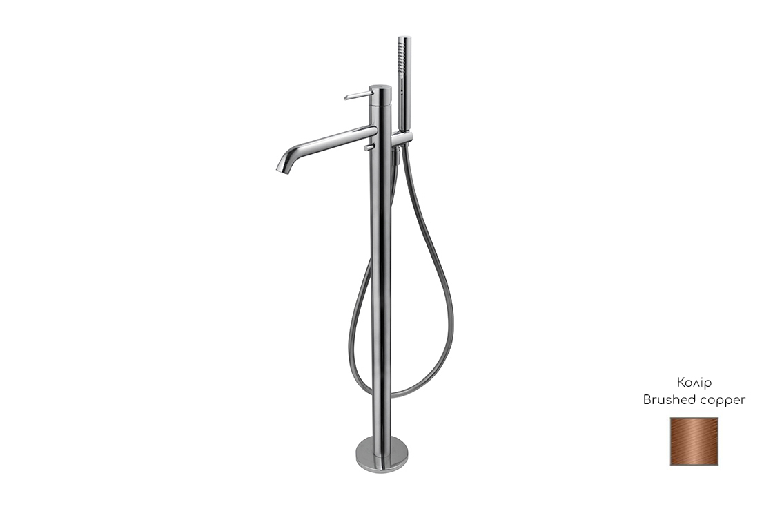 ROUND Змішувач підлоговий для ванни/душу зі шлангом 150 см та ручним душем, брашована мідь (100339990)