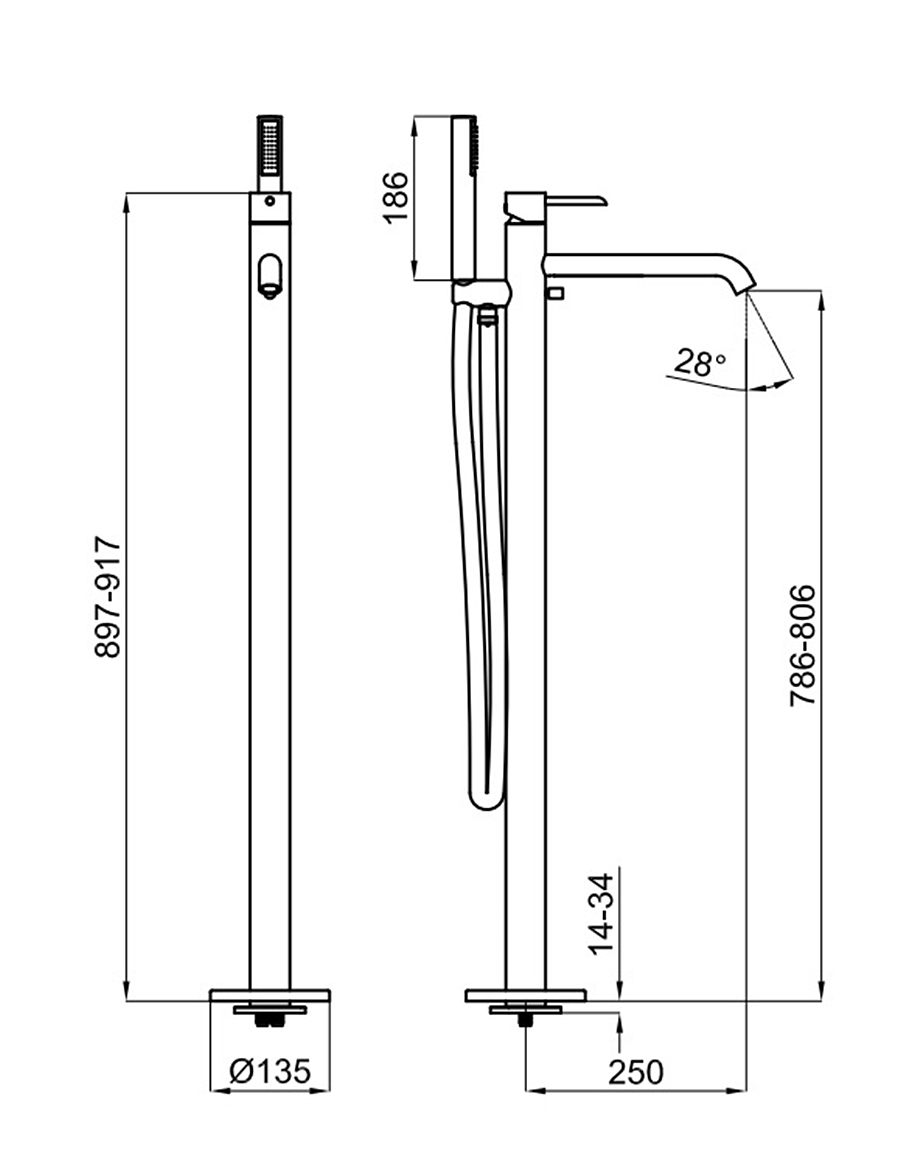 Одноважільний змішувач для ванни/душу підлогового монтажу з ручним душем.керамічний картридж Ø35 мм;автоматичний інвертор і аератор «плюс»;витрата душу при тиску 3 бар становить 12,25 л/хв; для ванни 14,64 л/хв;необхідне додаткове обладнання: SMART BOX BATH, корпус для установки підлогового змішувача, підкл 1/2" (арт.100149141) (не входить в комплект).