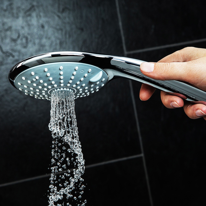 Цей душ оснащений зручним перемикачем, який дозволяє переключиться на будь-який з трьох режимів струменя - GROHE Rain / Massage / SmartRain. Дана модель ручного душа спеціально розроблена з орієнтиром на неперевершену раціональність, і отримання повноцінного задоволення від розкішних душових процедур.