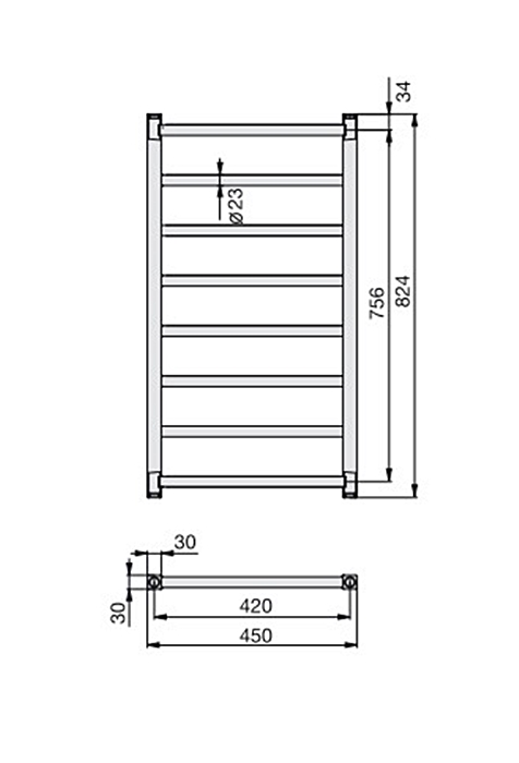 Рушникосушка STALOX 824х450 нержавійка RAL9016 White (STX-080-045)
