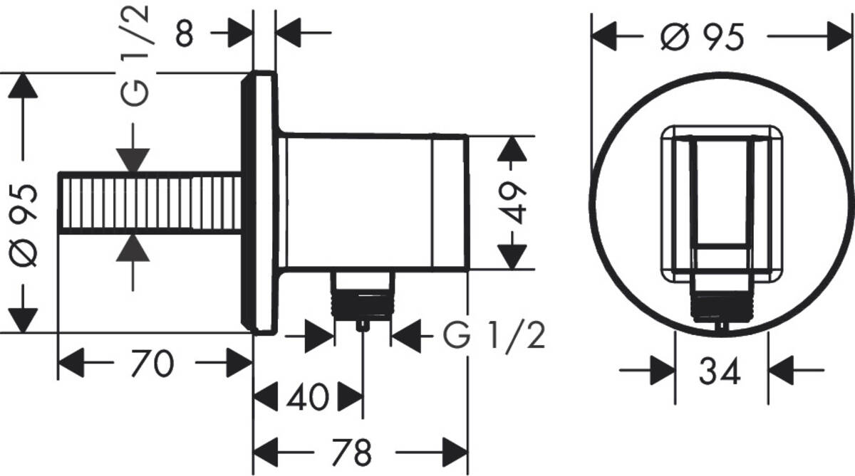інтегрована функція підтримки,металевий корпус з внутрішнім водопроводом із пластику,зворотний клапан,тип з'єднання: G ½,для душових шлангів з конусною гайкою.