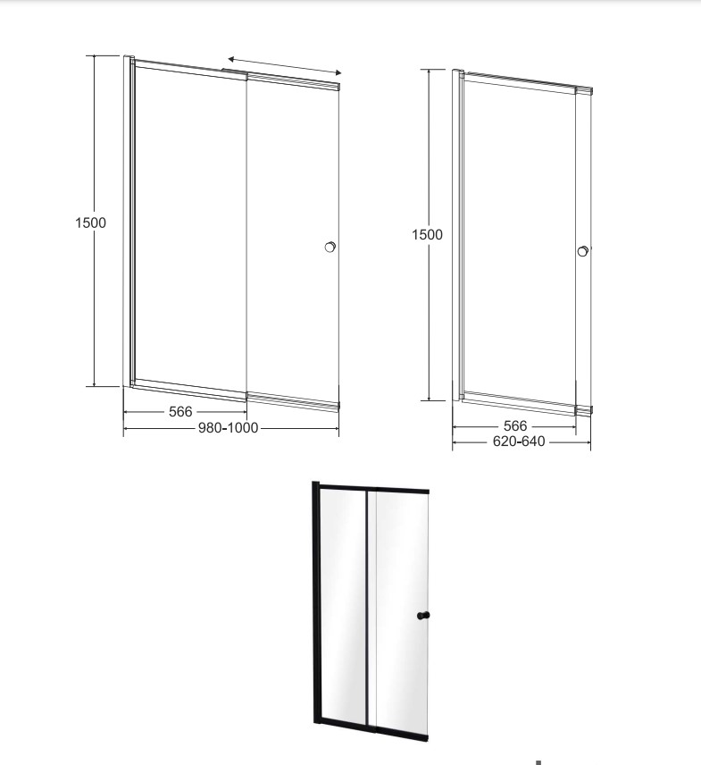 Безпечне гартоване скло 4 мм, Профіль чорний матовий, Регуляція 180 ˚. Універсальний монтаж (права/ліва). Висота 150 см, ширина 100см