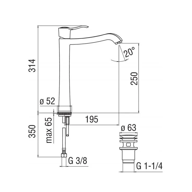 SI98128/2CR Змішувач для умивальника високий з донним клапаном хром Nobili ІТАЛІЯ