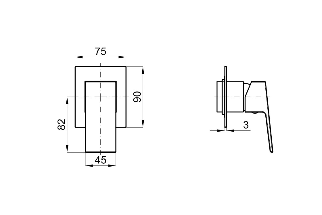 SQUARE, Зовнішня частина вбудованого змішувача для душу, чорний (100266837)