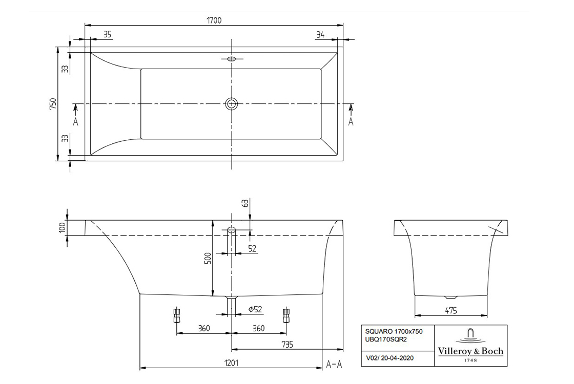 Відгуки про "SQUARO Duo Ванна 1700x750 з ніжками, Quaryl (UBQ170SQR2V-01), White Alpin"