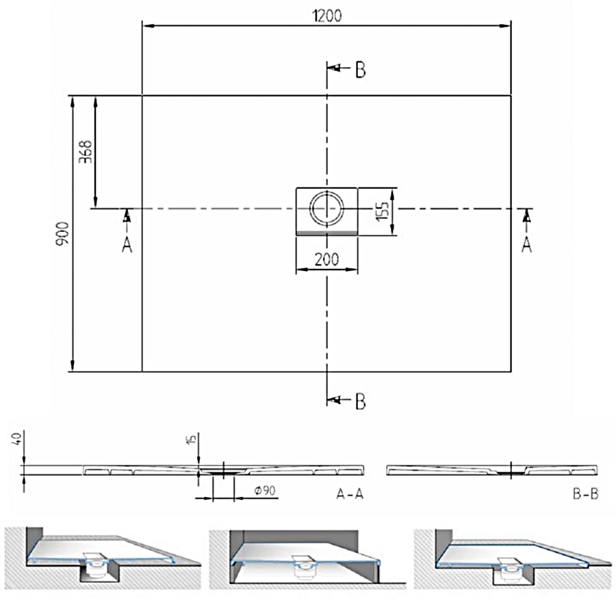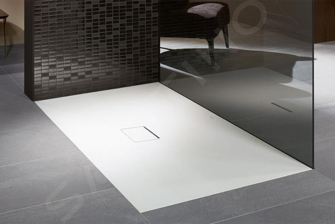 Душовий піддон прямокутний висотою 4 см, шириною 90 см, довжиною 120 см. Виготовлений з матеріалу Quaryl® (унікальний матеріал, суміш кварцевого піску та акрилу, розробка компанії Villeroy&Boch), колір Stone White (білий камінь)