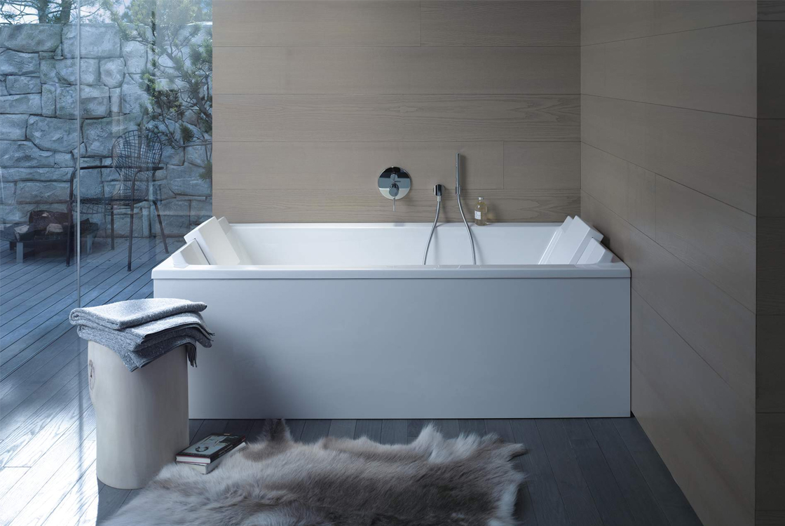 Ванна прямокутна білого кольору від відомого дизайнера Філіпа Старка. Виготовлена з сантехнічного акрилу з приємною гладкою поверхнею. 2 похилі спинки створюють зручне місце для сидіння.Додатково комплектується ніжками, обудовою та підголовником.